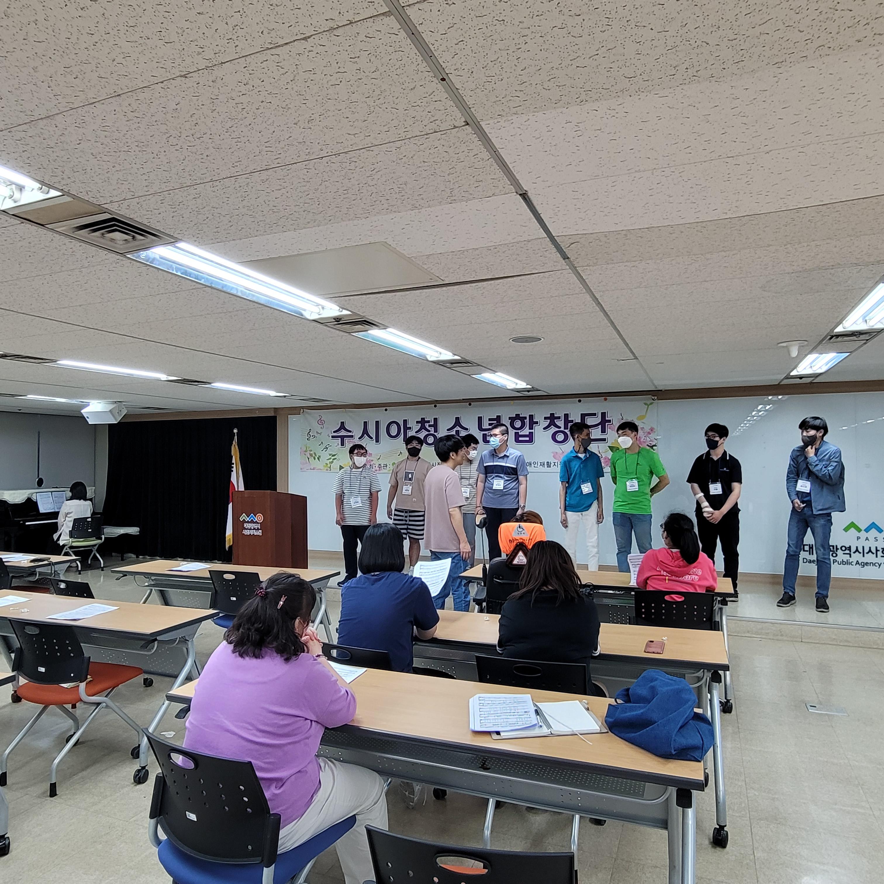 지난 06월 09일(목) 저녁 7시부터 대전사회복지회관 9층 가치100+에서 합창교육 8회기를 실시하였습니다.