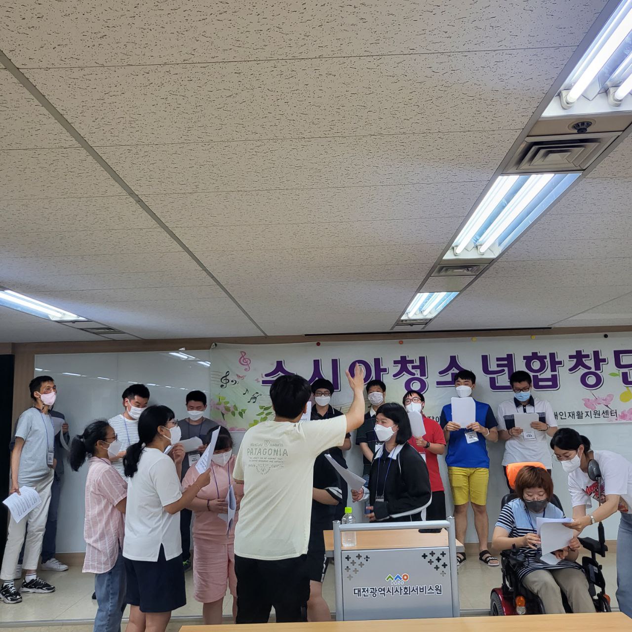 지난 06월 23일(목) 저녁 7시부터 대전사회복지회관 9층 가치100+에서 합창교육 10회기를 실시하였습니다.