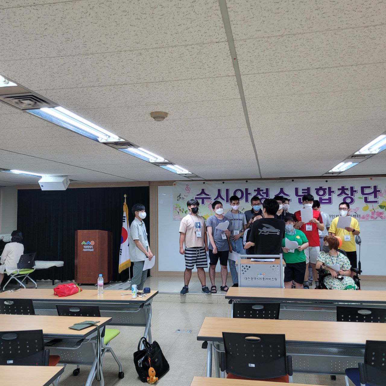 지난 07월 07일(목) 저녁 7시부터 대전사회복지회관 9층 가치100+에서 합창교육 12회기를 실시하였습니다.