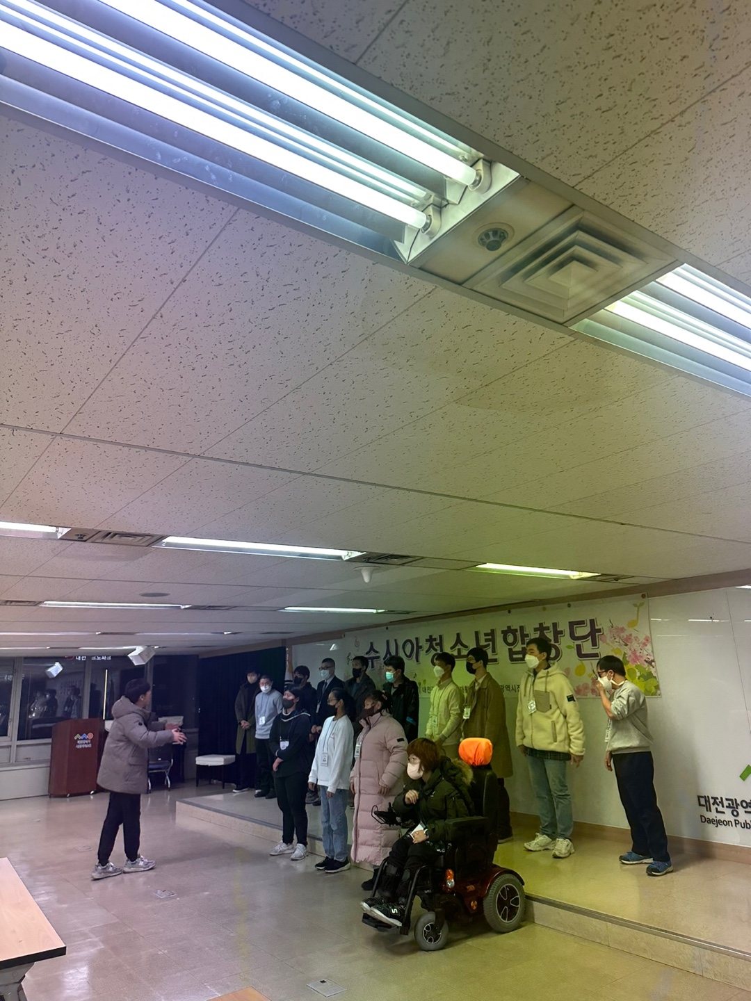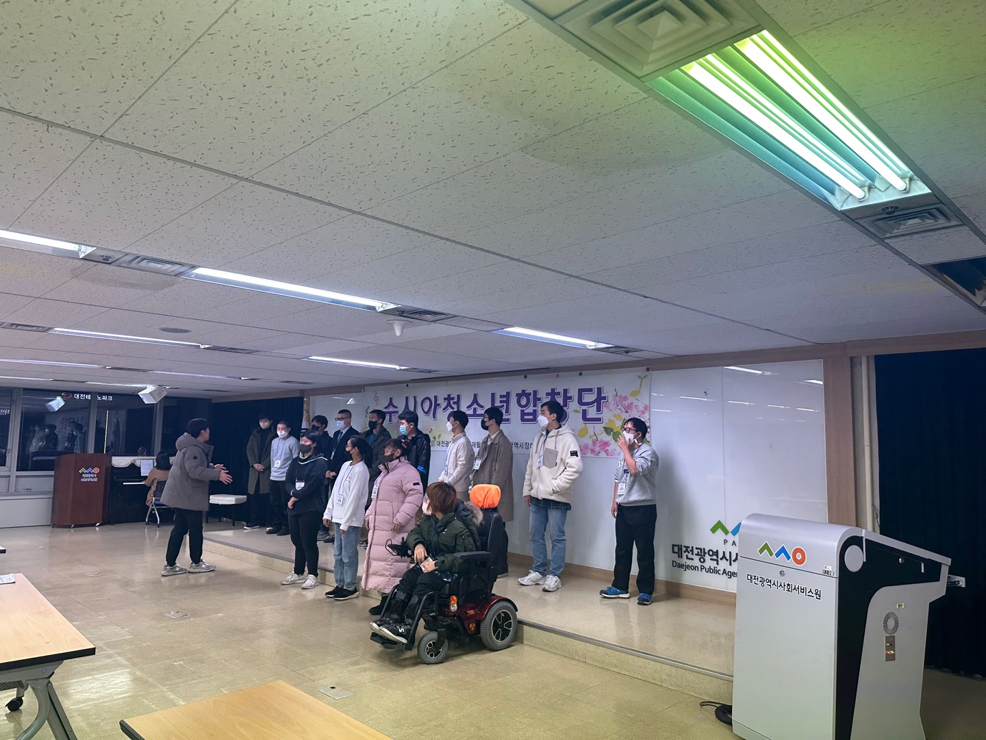 지난 12월 05일(월) 저녁 7시부터 대전사회복지회관 9층 가치100+에서 합창교육 28회기를 실시하였습니다.