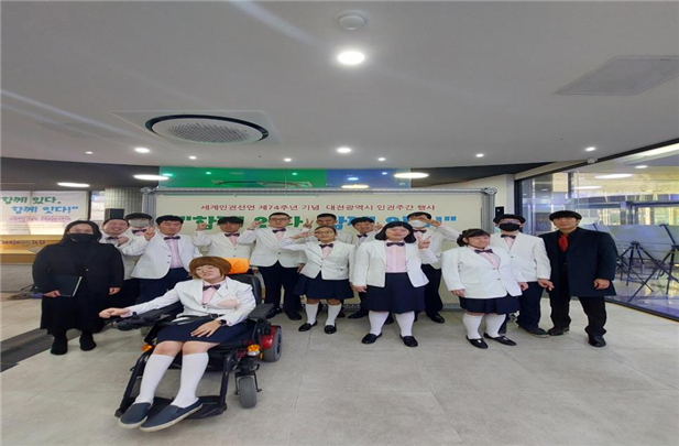 이번 나눔 공연은 제74주년 세계인권선언, 함께 있고, 함께 잇다’로 대전광역시 인권센터 외 4곳이 공동 주최 및 한국철도공사 협력으로 주관하였습니다. 우리 단원들은 리허설을 위해 오후 2시 00분부터 모여서 공연 연습을 하였습니다~ 이번 나눔공연에서 리허설 없이 오후 3시 30분에 본 공연을 시작하였습니다.