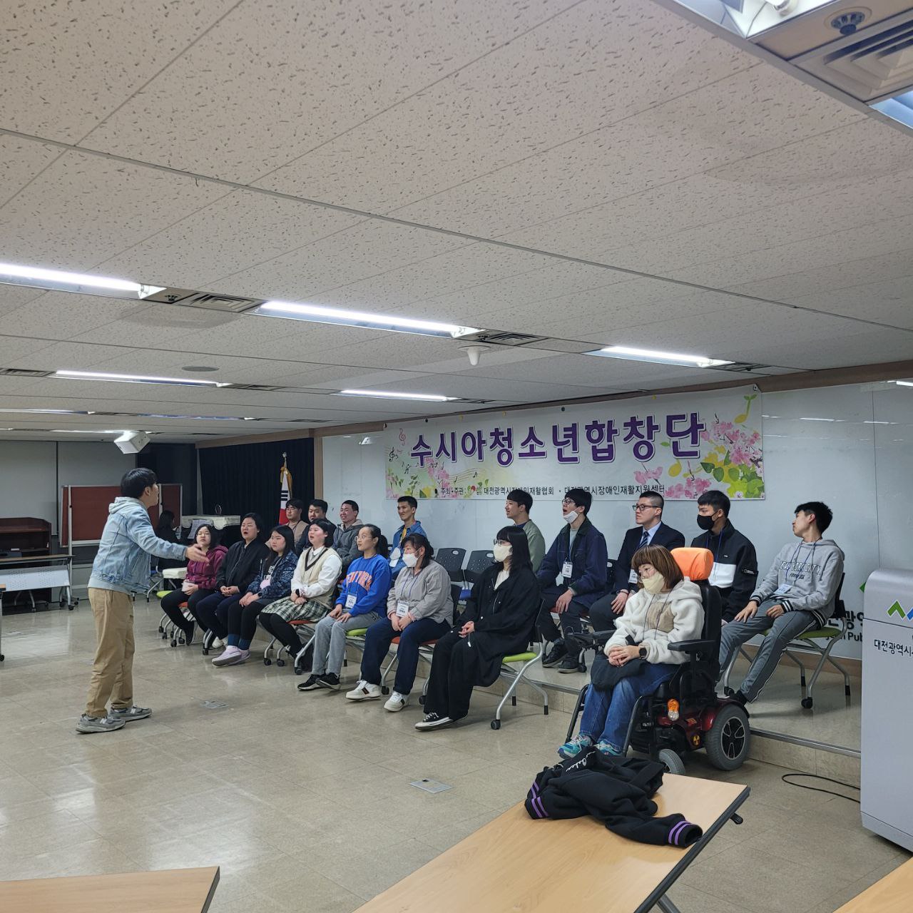 4월 17일(월) 저녁 7시부터 대전사회복지회관 9층 가치100+에서 합창 교육 3회기를 실시하였습니다.