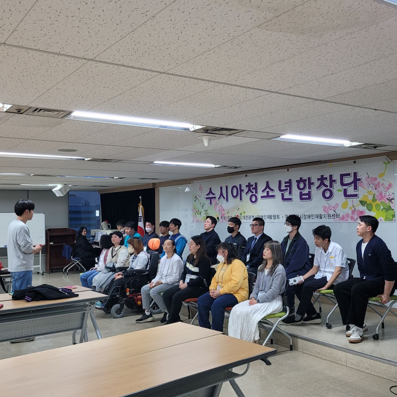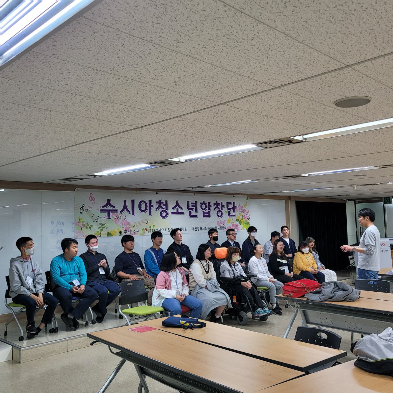 4월 27일(목) 저녁 7시부터 대전사회복지회관 9층 가치100+에서 합창 교육 5회기를 실시하였습니다.