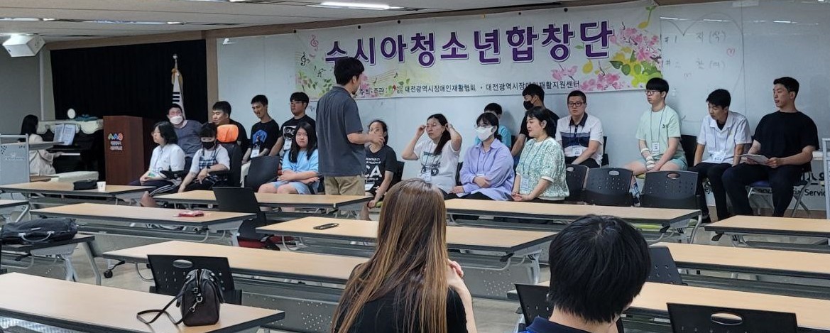 7월 6일(목) 저녁 7시부터 대전사회복지회관 9층 가치100+에서 합창 교육 15회기를 실시하였습니다.