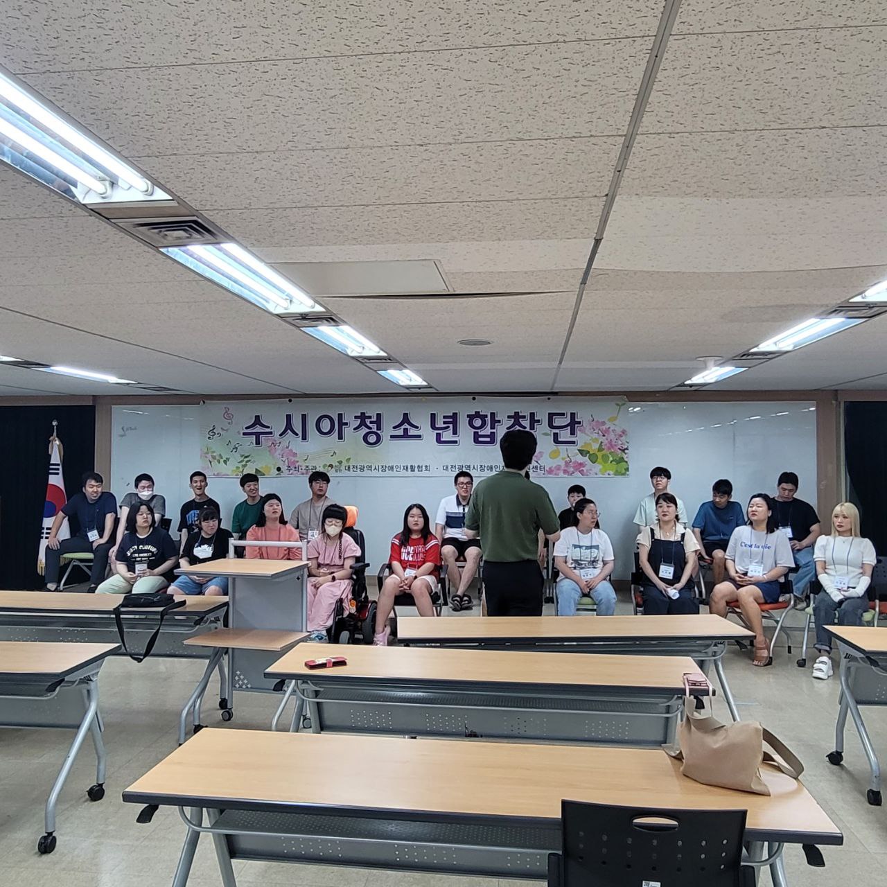 7월 20일(목) 저녁 7시부터 대전사회복지회관 9층 가치100+에서 합창 교육 16회기를 실시하였습니다.