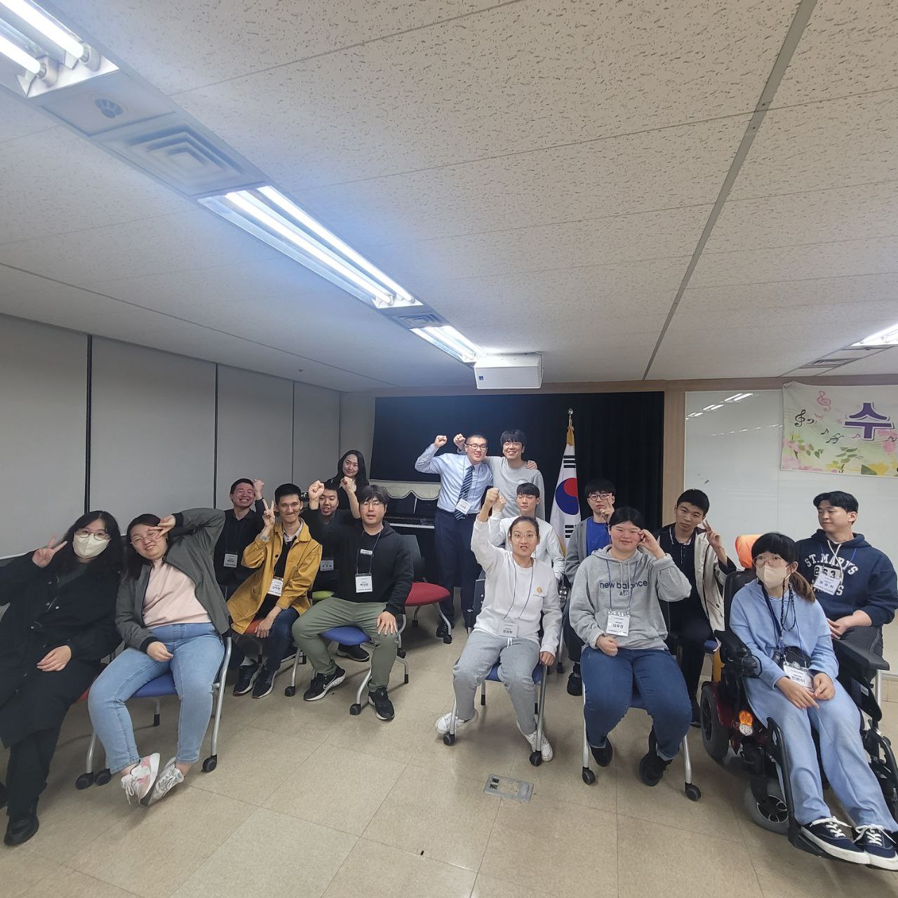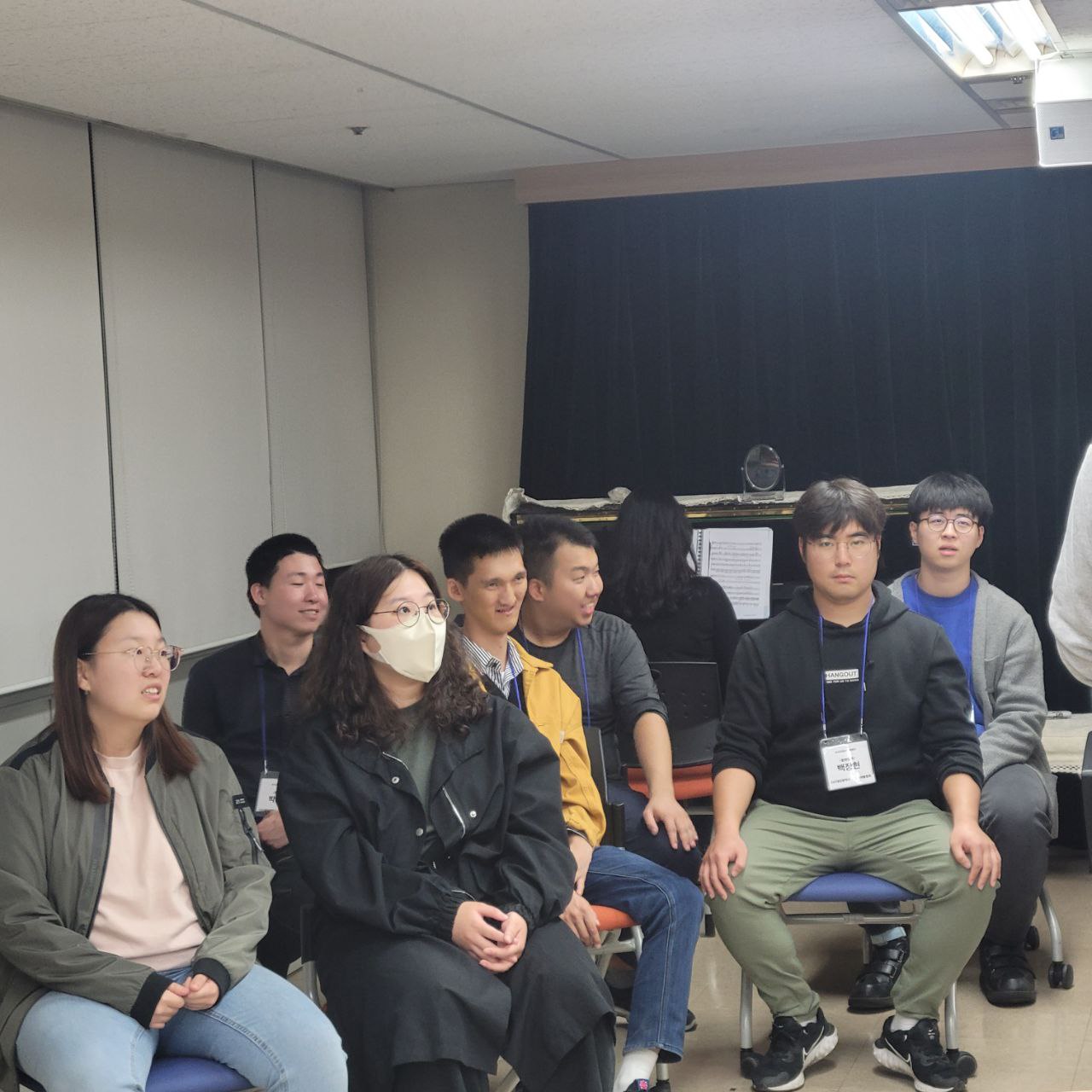 오늘은 전체적으로 4성부의 합창으로 파트별로 멜로디를 정확히 알 수 있도록 연습하였고 소리가 끊어지지 않게 소리 내며 노래를 불러보았습니다. 그래도 몇 개월 동안 연습한 보람이 있는 것 같습니다. 각자 본인의 파트를 기억하며 노래를 부르는 모습도 보이고 합창 교육 마지막 시간까지 열심히 불러준 단원도 보였습니다.