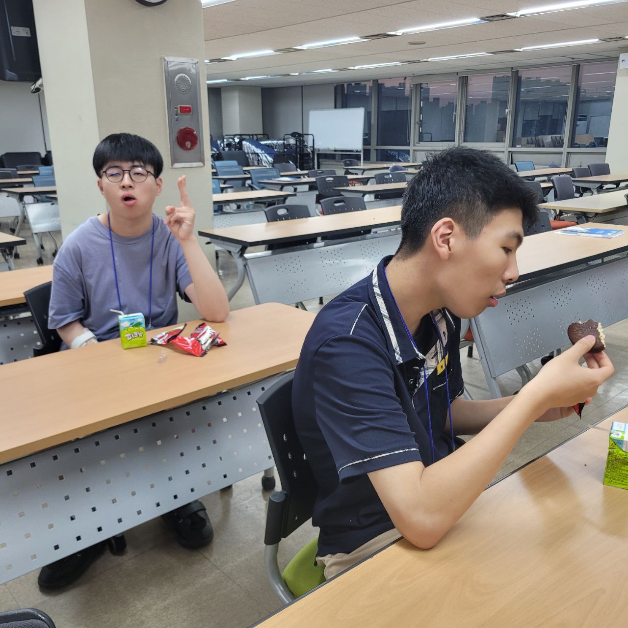 이번 간식은 이들 아버님께서 준비해주신 초코파이와 수시아에서 준비한 음료와 함께 맛있게 먹었습니다.